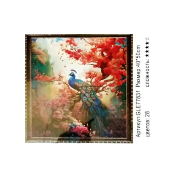 Алмазная мозаика арт. GLE77831 Павлин 40*50 полная выкладка на подрамнике