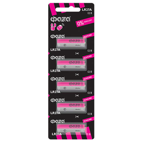 кв_Батарейка ФАZА Alkaline LR27А 12В BL5 (60/1000) [LR27A-B5]Вид: Щелочные