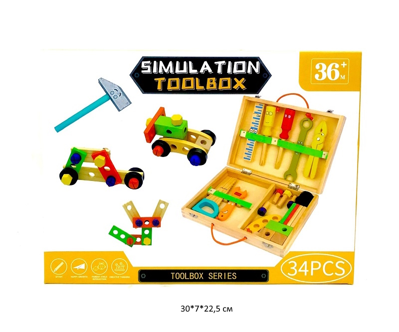 Деревянная игрушка арт. 2181-177 Набор плотника и конструктор 34 дет. в кор._