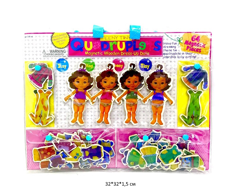 Деревянная игрушка арт. 92-11 Девочки с одеждой магнитн. в прозрач. сумке_
