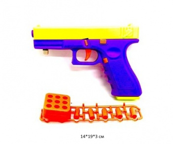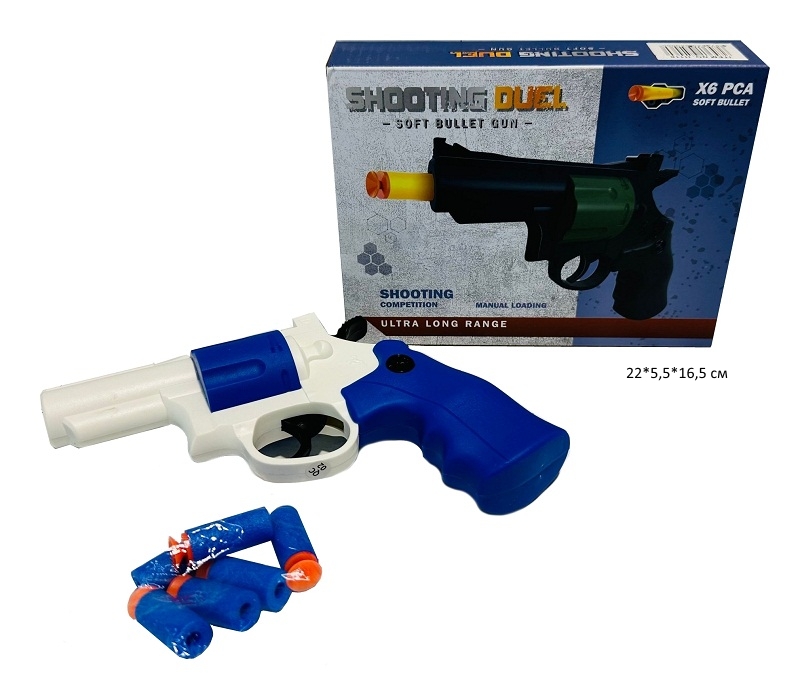 - Оружие арт. H118C Пистолет c мягкими пулями в кор.•×Оружие арт. H118C Пистолет c мягкими пулями в кор.•Детский пистолет с мягкими пулями понравится каждому ребенку. Игрушечный револьвер выполнен в реалистичном привлекательном дизайне, очень простой принцип работы. Мягкие снаряды безопасны для ребенка. Прочные и долговечные материалы прослужат много лет. Рукоять пистолета удобно лежит в ладошке. В комплекте оружие и 6 пороллоновых снарядов с присосками. Принцип работы автомата: вставьте снаряд в дуло, нажмите на курок - револьвер выстрелит.