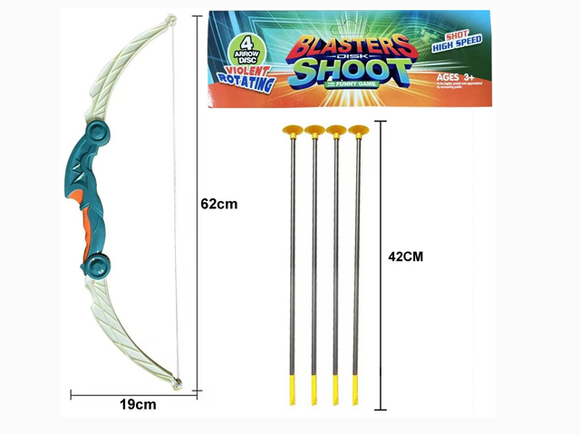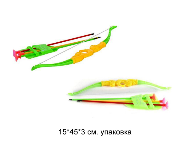 - Лук арт. 6082-1A" со стрелами в пакете 30*3*3×Лук арт. 6082-1A" со стрелами в пакете 30*3*3Стрельба из лука - это интересное и полезное занятие, помогающее развить ловкость и умение сосредотачиваться. После того, как ребенок овладеет мастерством, он со своими друзьями сможет устраивать соревнования на меткость и дальность стрельбы. Набор прост в использовании. Поместите стрелу в тетеву, потяните за наконечник, прицельтесь и отпустите стрелу. Классно и безопасно! В комплекте стрелы с присосками.
