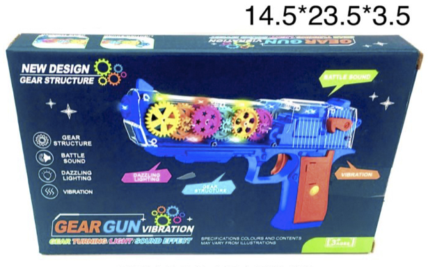Оружие арт. 696-49 Пистолет с шестеренками на бат. (свет, звук) в кор._/96шт./