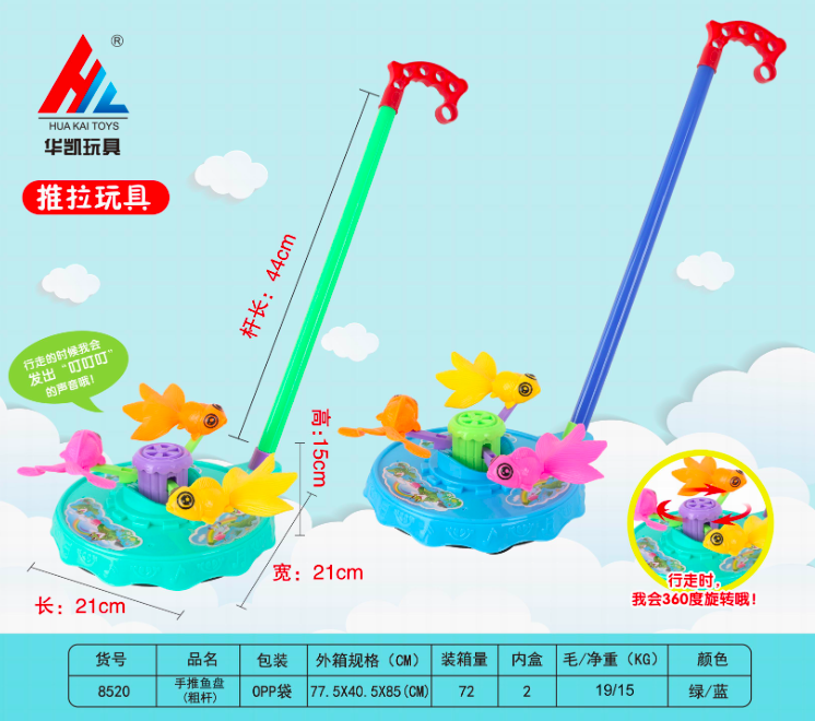 Каталка арт. 8520 Золотые рыбки с ручкой в пакете 44*21*21