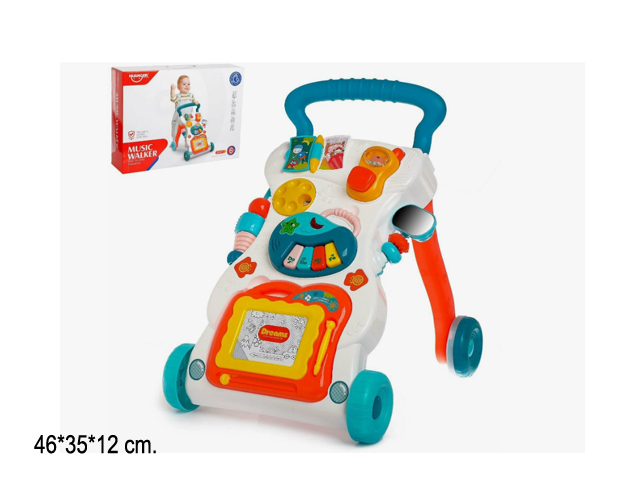 Комплект: каталка-ходунки, телефон, мини-пианино, магнитная доска для рисования.
