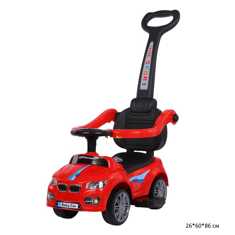 Толокар арт. 901-1 Каталка с родительской ручкой, ограничителями свет, звук КРАСНЫЙ в кор.60*29*29