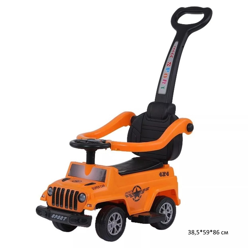 Толокар арт. 906-3 каталка с родительской ручкой, ограничителями свет, звук ОРАНЖЕВЫЙ в кор.60*29*29