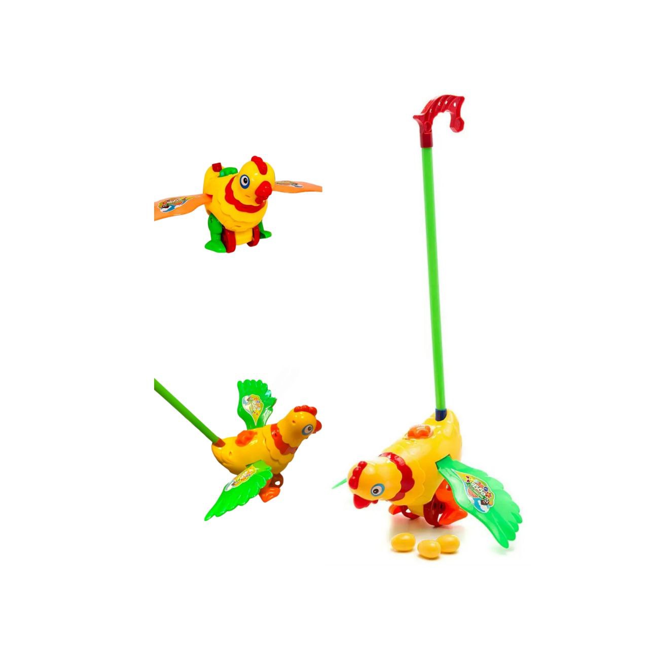 Каталка арт. 986-2 Курица с ручкой + 3 яйца в пак._