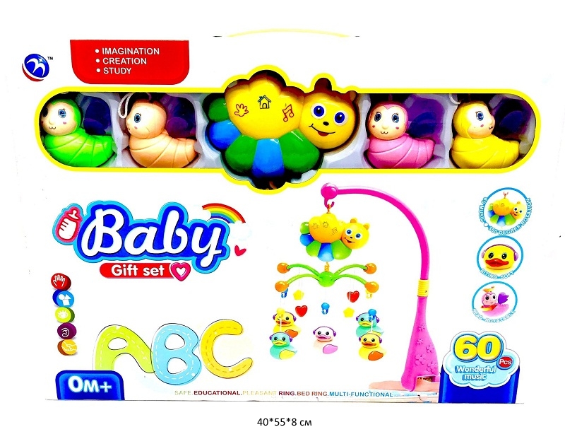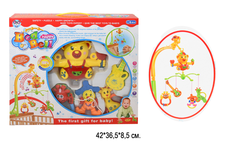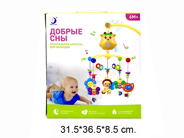 Погремушка подвеска арт. BM3016-1/-2 Мобиль в коробке_Игрушка имеет 90 музыкальных мелодий, карусель вращается на 360 градусов. У подвесных игрушек крутится голова, они съёмные, с ними можно играть отдельно и брать их с собой на прогулку.