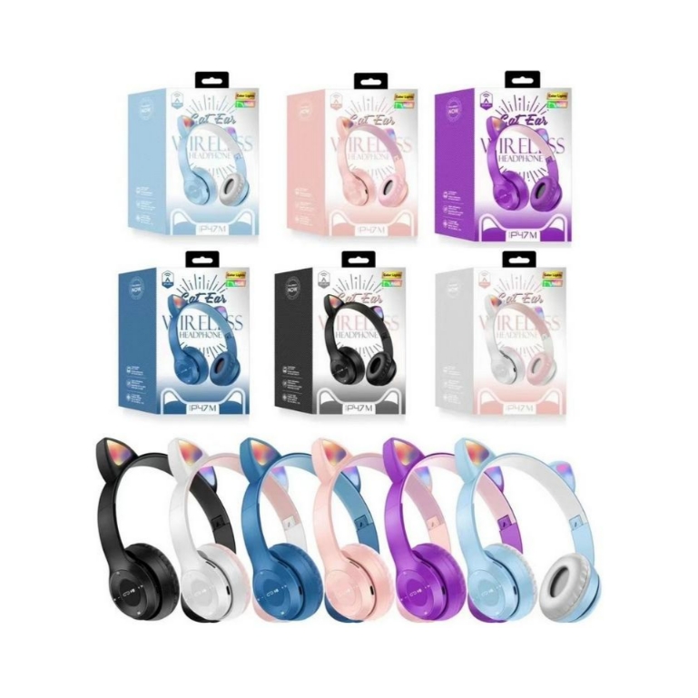 Наушники арт. P47M Беспроводные "Кошачьи ушки" цвета микс в кор./