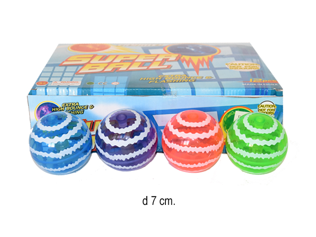 Мяч каучук. арт. 2557-4 Прозрачный блестки, свет 6,5 см (12 шт.) шоубокс•