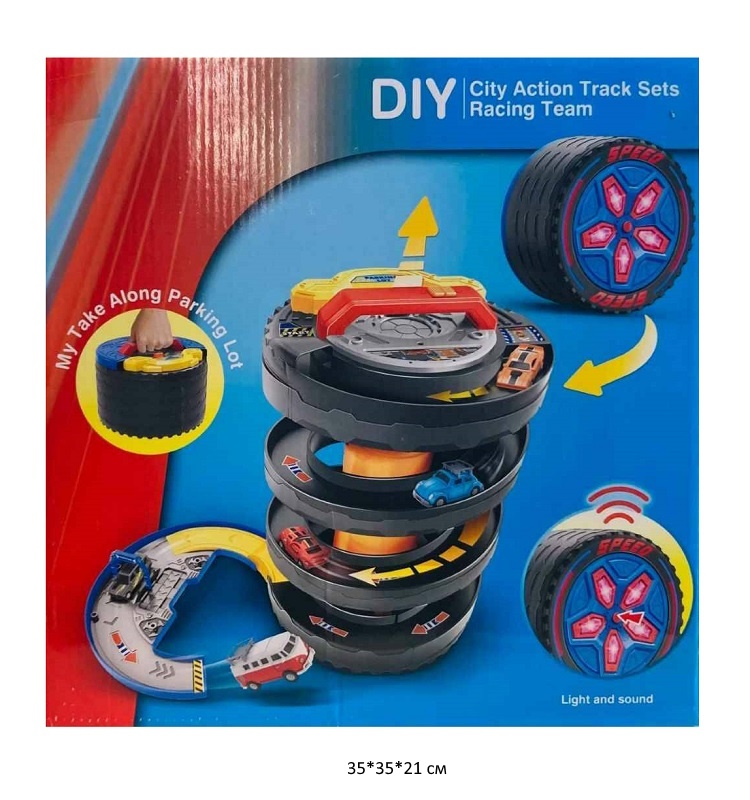 Парковка арт. SK-571SA "Колесо" трансформер свет, звук, спиральн. съезд в кор.~