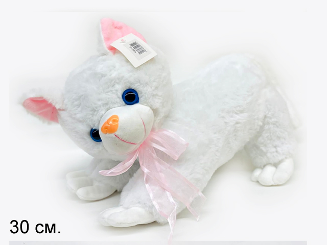им Кошка арт. 6627-22 Белая с розовым бантиком 30 см в пак.)