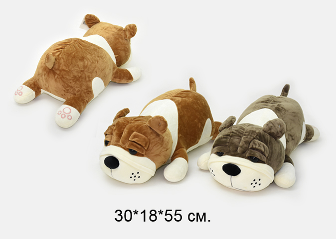 им Собака арт. 305-60/YE23815-7 Бульдог цвета микс лежит 55 см в пак.)