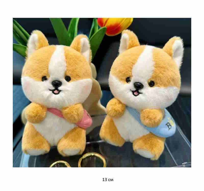 им Собака арт. 24046-209 Рыжая с сумкой цвета микс брелок 13 см в пак.