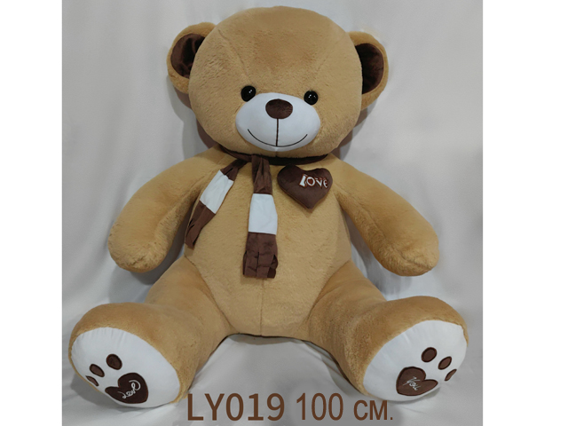 им Медведь арт. LY019-1 Коричневый с сердцем в шарфе 100 см в пак._