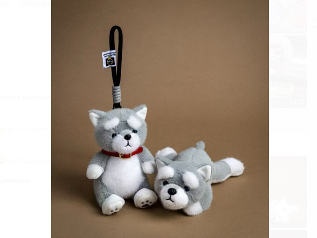 им Собака арт. 13812-209-6 Собака серо-белая с бровями брелок 18 см в пак.