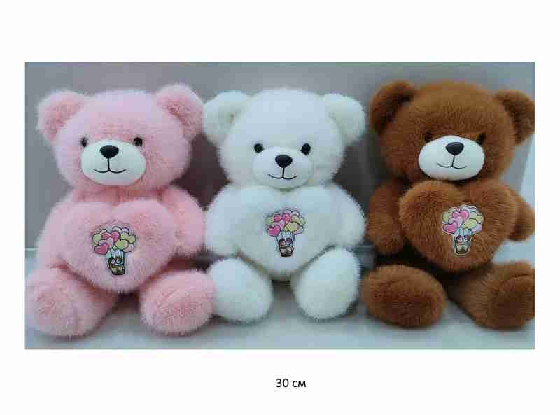 им Медведь арт. YE25508-8 Пушистый цвета микс с сердцем в лапках 30 см в пак.)