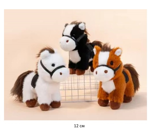 им Лошадь арт. YE25508-11 Мохнатая с петлей и седлом муз. цвета микс в пак.)