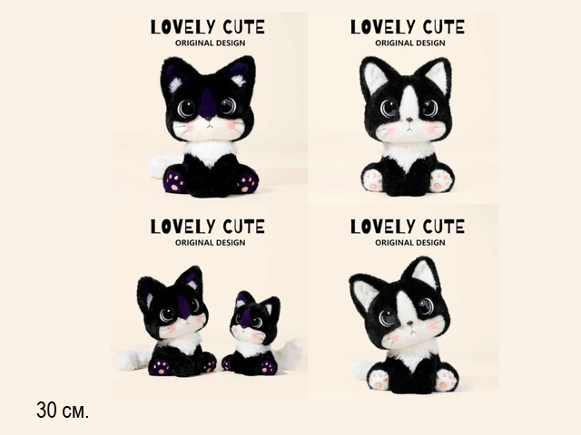 им Кошка арт. 209983 Черно-белая с розовыми следами сидит 30 см в пак.