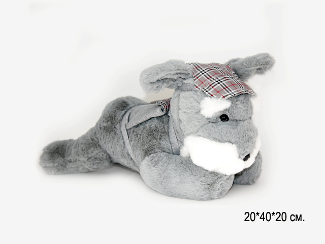 им Собака арт. 01399-209 Серая в кепке лежит 40 см в пак.