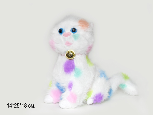им Кошка арт. YE250215-6 Белая в радужных пятнах стоит 25 см в пак.)