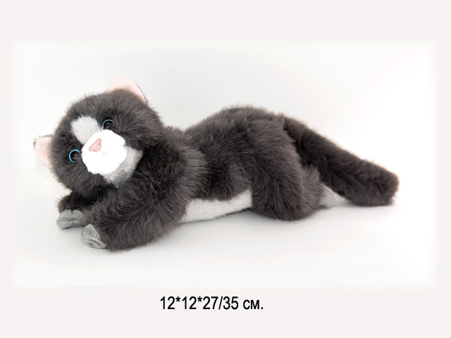 им Кошка арт. 209975/BO-2-30-3 Темно-серая с белым лежит 30 см в пак._
