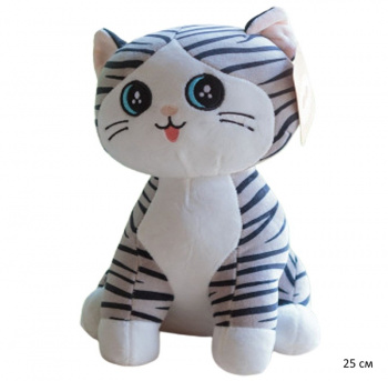 - им Кошка арт. YE907-1 Серая полосатая сидит 25 см в пак.)×им Кошка арт. YE907-1 Серая полосатая сидит 25 см в пак.)Забавная кошечка выглядит мило и станет надежным другом для ребенка. Игрушка очень приятная на ощупь благодаря мягкому искусственному меху, из которого сшита. Её легко стирать и сушить.
