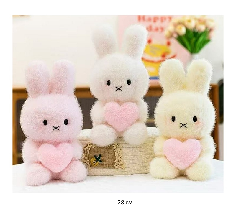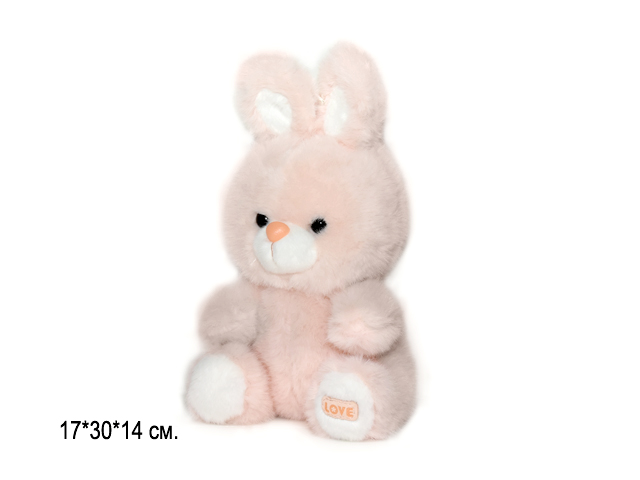 им Зайка арт. YE25508-3 Розовый сидит "LOVE" на лапе 30 см в пак.)