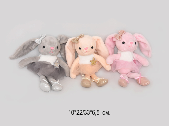 им Зайка арт. YE251025-4/25910-4-2 Бежевый в слюнявчике уши вверх 35 см в пак.)