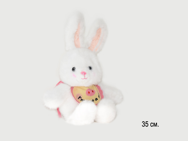им Зайка арт. YE251025-4/25910-4-1 Белый в слюнявчике уши вверх 35 см в пак.)