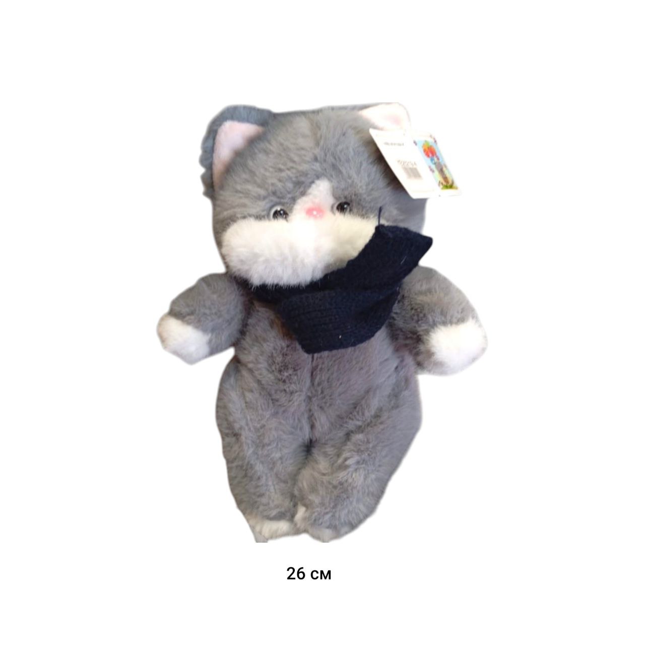 им Кошка арт. YE25219-2-5 Пушистая серая в шарфе муз. 26 см в пак.)