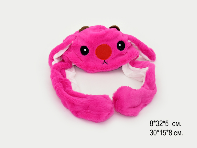 им Зайка-шапка арт. 2126-41 Розовая двигает ушами свет в пак._