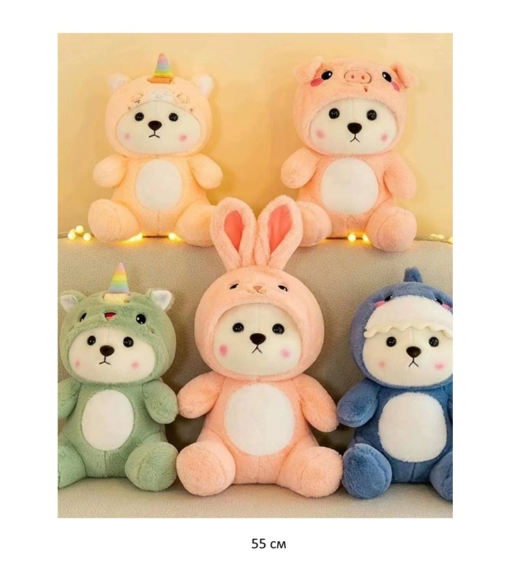 им Медведь арт. 240315-8/24612-3 Белый в костюме зверюшки ассорти 55 см в пак.)