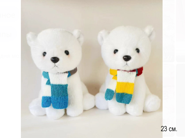им Медведь арт. 4444-209 Вязаный полосатый шарф белый сидит 23 см в пак.