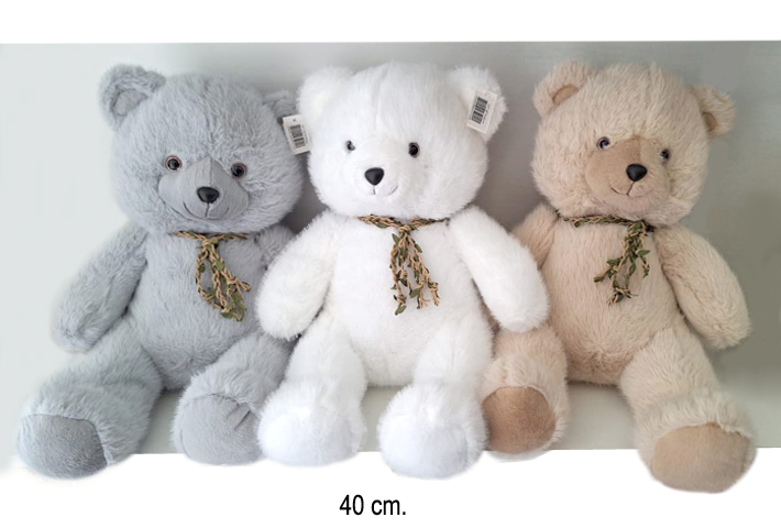 им Медведь арт. 9575/40 С плетеным украшением на шее цвета микс 40 см в пак.