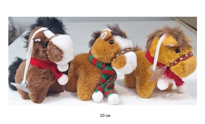 им Лошадь арт. 825-19/YE25510-4 В новогодн. шарфе на присоске 9*10см цвета микс 1шт. в пак. (24шт.))