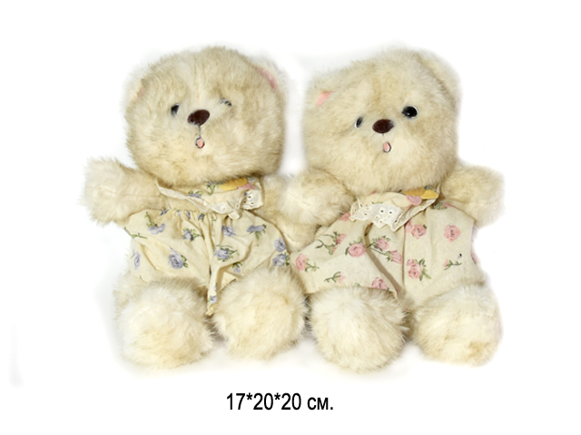 им Медведь арт. 209034 Мохнатый светлый в платье в цветочек 30 см в пак.