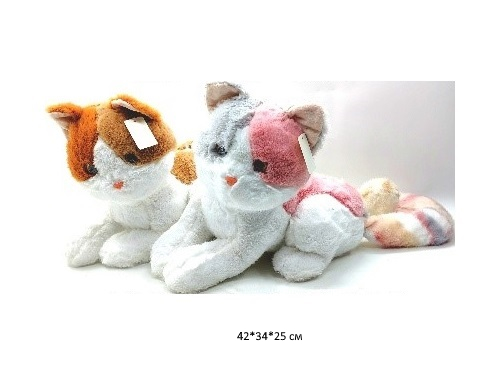 им Кошка арт. 0803-64 Белая с пятнами, полосатым хвостом 42*34*25 см в пак._