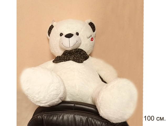 им Медведь арт. LY014-1-2 Белый с поцелуем на щеке 100 см в пак._