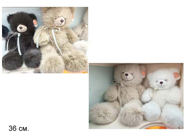им Медведь арт. 209056 Меховой с лентой на шее цвета микс 36 см в пак.