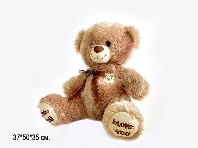 им Медведь арт. 17345-209 Бежевый c заплаткой на груди и "I love you" на лапах 50 см в пак.