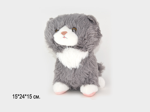 им Кошка арт. 14429-2-209 Серая с белым мохнатая сидит 24*15 см в пак.