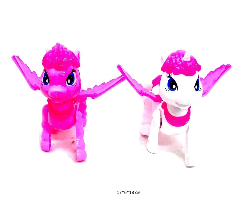 Эта лошадка станет волшебным другом для игр! Пони издает разные звуки: мелодию, ржание лошадки и звук галопа. Такая игрушка порадует любую малышку, ведь крылышки у нее ярко светятся. Лошадка умеет быстро ходить, двигать крылышками и головой.