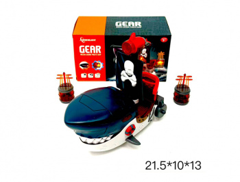 При включении передвигается на колёсах в произвольном направлении. Световые и звуковые эффекты.