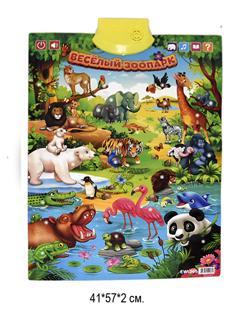 Плакат обуч. арт. 265 "Зоопарк" интеракт. на бат. в пакете._~=•/100шт./