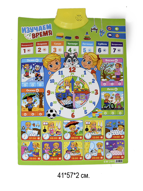 Плакат обуч. арт. 260/5005 "Время" интерактив. на бат. в пак.~)_/100 шт./
