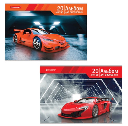 кс_Альбом для рисования арт. 106695 А4, 24 л. гребень, обложка картон BRAUBERG 195х285мм "Спорткар"Количество листов: 24