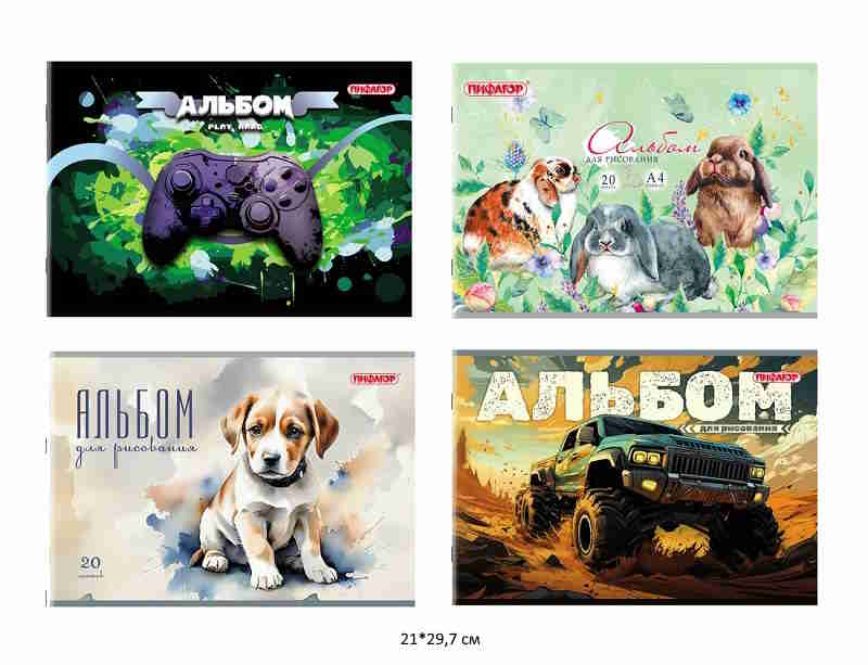 кс_Альбом для рисования арт. 107103 А4 20 л. скоба, обложка офсет, ПИФАГОР, 203х288мм "МИКС-2"Количество листов: 20