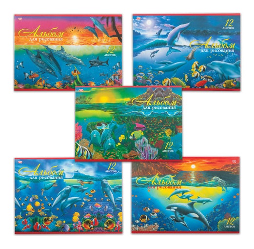 кс_Альбом для рисования арт. 103400 А4, 12 лист скоба, обложка офсет, HATBER VK 205х290мм "Дельфины"Количество листов: 12